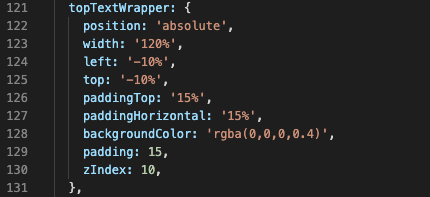 The last thing worth noting in this step is topTextWrapper style object because the values assigned are a little odd at a first glance.