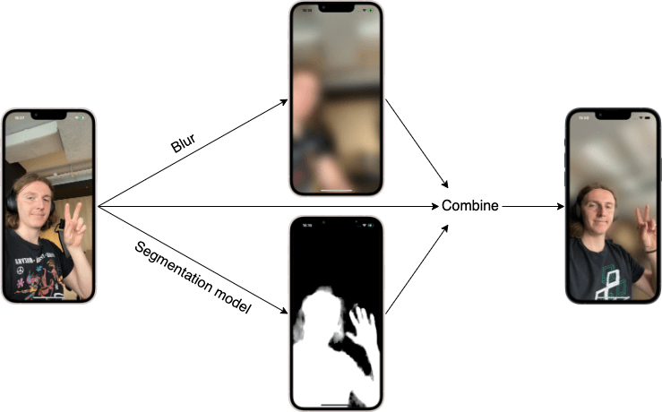 Mobile phones are powerful enough to run real-time inference on the device. It can be used to classify images, detect spoken language or as in this tutorial blur the background behind the person. We’ll show you how to set up a React Native app and run a computer vision model in real-time using react-native-vision-camera and react-native-fast-tflite. The high-level idea is shown in the diagram below: