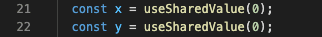 We want to be able to move our card in any direction so we will need two shared values that will move our component in both the x and y axes. The default values for those variables should be 0 since we don’t want any translation applied from the start.