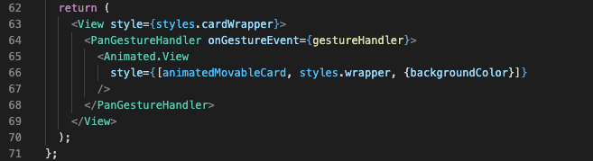 We have two new elements introduced here that I haven’t mentioned before: gestureHandler and animatedMovableCard.