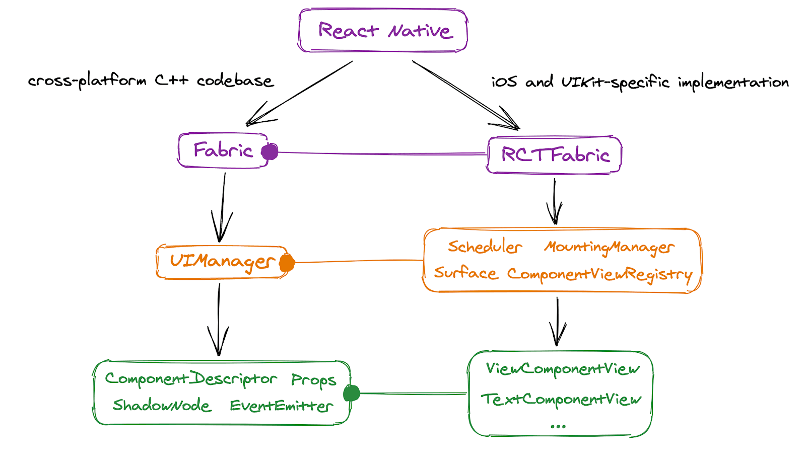 As you can see, the new Fabric architecture provides an API that makes it possible to swap out the layer that integrates with the platform native components thus allowing for this implementation to be completely replaced by something that does not depend on things like the UIKit library.